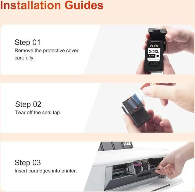Easyto install. All ejet products can meet your daily printing needs, allcompatible printers can recognize the ink and toner cartridges and work with quality printout.