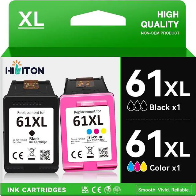 Package Contains:1 Pack of 61 XL Black Ink Cartridge for HP 61XL, 1 Pack of 61 XL Color Ink Cartridge For HP61XL (*Note this is not an OEM cartridge)
