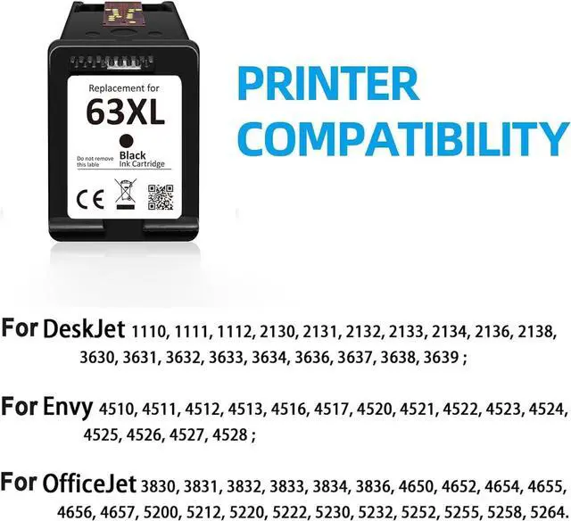 MaxPage 63XL Black High-Yield Ink Cartridge Compatible 63XL Works for OfficeJet 4650 5255 3830 4655 5200 4652 5252,for Envy 4520 4510 4512 3634,for DeskJet 3636 1112 3630 2130 3632 2132 3637 Printer
