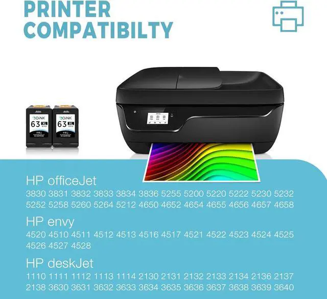 63 63xl 63 XL Black Ink Cartridge Replacement for HP 63 63xl 63 XL Black Ink Cartridges Encre HP 63 HP Ink 63 to use with Envy 4520 4512 (2 Black, 2 Pack)