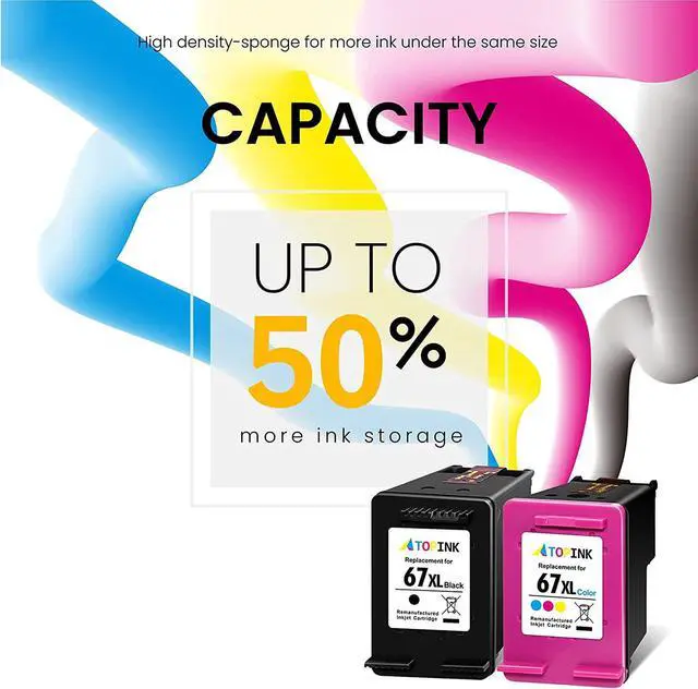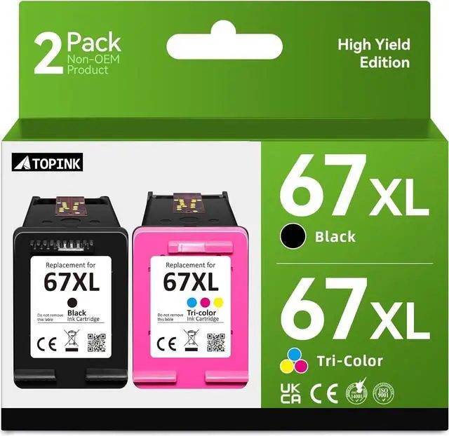 Compatible Models: Replacement for HP 67 xl black & color ink cartridges compatible with DeskJet 1210 1212 1215 1255 2300 2330 2331 2332 2333 2700 2710 2720 2721 2722 2723 2724 2725 2729 2732 2752 2755; DeskJet Plus 4100 4110 4120 4121 4122 4130 4132 4140 4152 4155 4158; Envy 6000 6010 6020 6022 6030 6032 6034 6052 6055 6058 6075 printers.