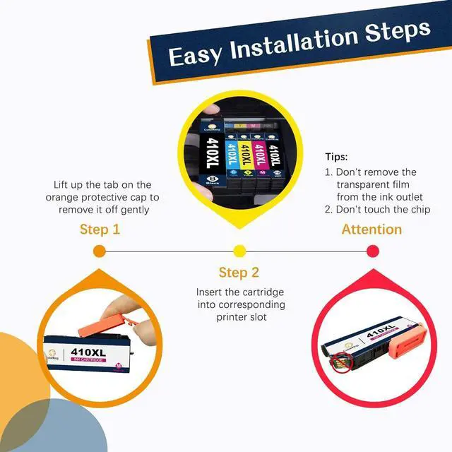 Note: Before purchasing, please confirm that the 410XL 410 XL 410 ink cartridge is suitable for your printer, if there is any problem with the purchased product or you bought the wrong one, please contact us and we will help you to solve it