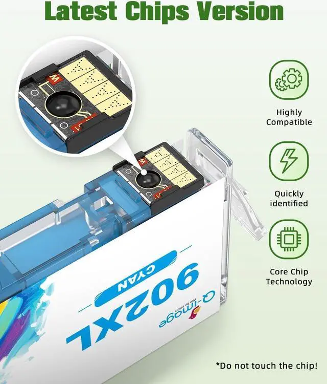 Model: Compatible 902XL ink cartridges for HP printers and latest version chip HP 902XL ink cartridges combo pack