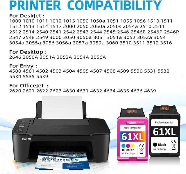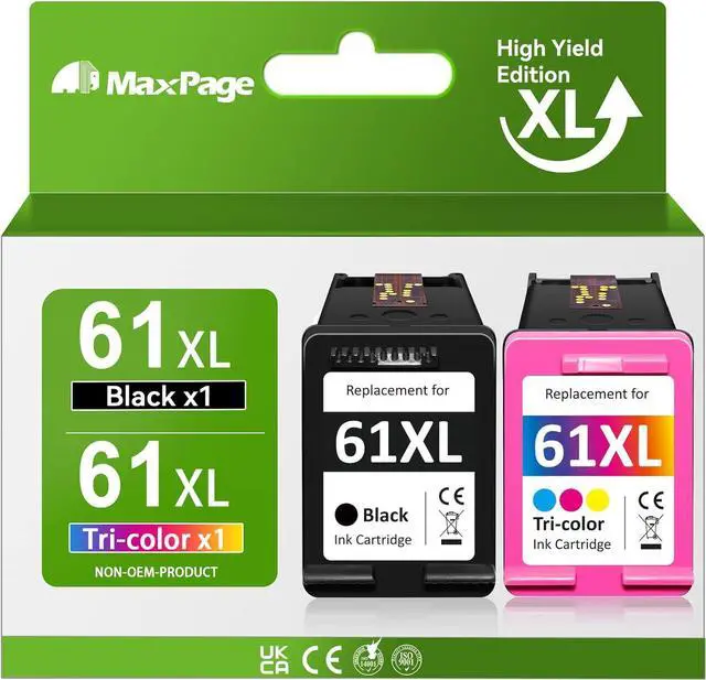 PACKAGE CONTENT: 2 Pack (1 Black, 1 Tri-color Combo Pack) of remanufactured ink cartridge replacements for HP 61 ink cartridges black color combo pack.