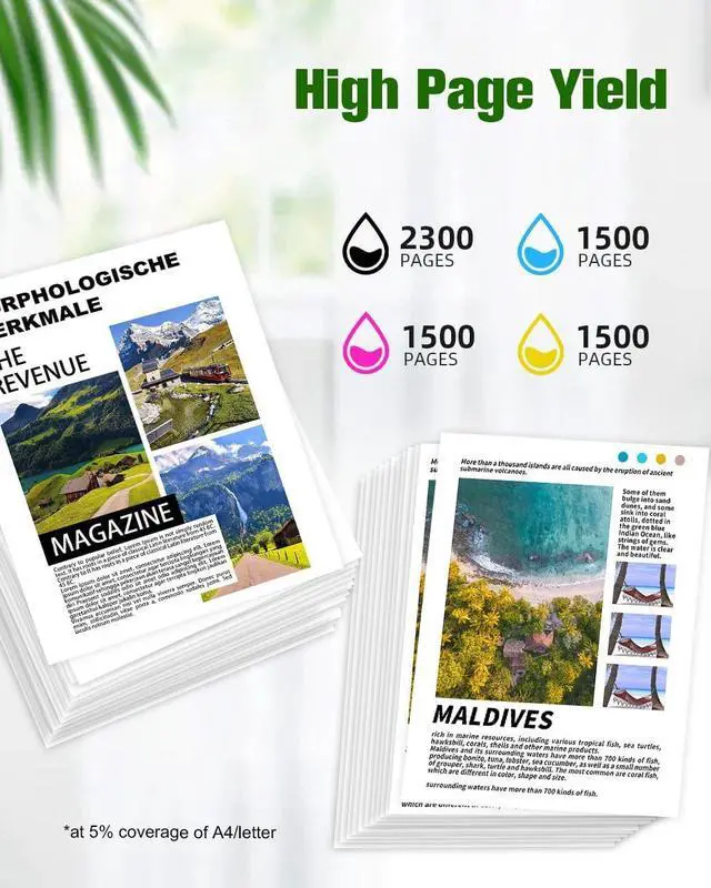 Estimated Page Yield: 2300 Pages per 950XL (Black), 1500 Pages 951XL per (Cyan/Magenta/Yellow), at 5% coverage of A4/letter
