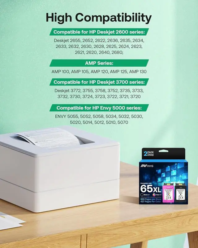 High Quality: The latest improved high precision chips in 65XL ink cartridges for HP ink 65 assure optimum compatibility with your printer.
