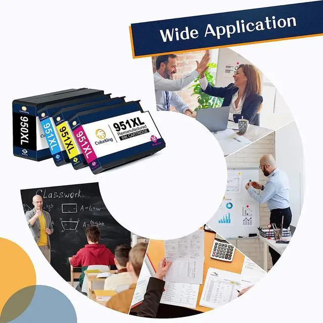 Package Contents: 1 x User Guide, 4 Pack of Remanufactured Ink Cartridges Replacement for HP 951XL 950XL 950 XL 951 XL (1 Black, 1 Cyan, 1 Magenta, 1 Yellow Combo Pack)