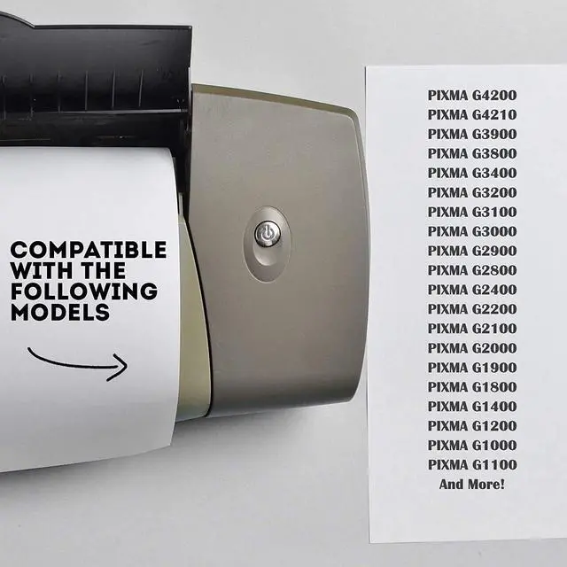 Compatible for Canon PIXMA G4210, PIXMA G4200, PIXMA G3900, PIXMA G3800, PIXMA G3400, PIXMA G3200, PIXMA G3100, PIXMA G3000, PIXMA G2900, PIXMA G2800, PIXMA G2400, PIXMA G2200, PIXMA G2100, PIXMA G2000, PIXMA G1900, PIXMA G1800, PIXMA G1400 PIXMA, PIXMA G1200, PIXMA G1100, & PIXMA G1000 Printers