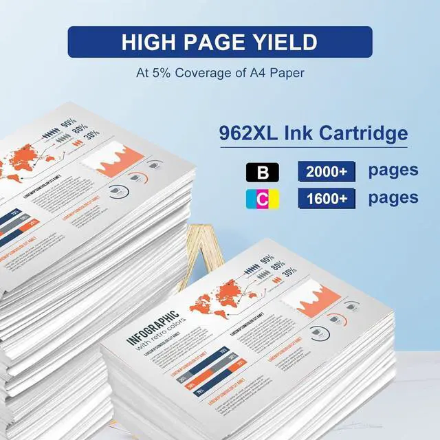 Paye Yield2000 pages per 962XL 962 black ink cartridge; 1600 pages per 962XL 962 color ink cartridge ( At 5 Percent Coverage of A4 Paper)