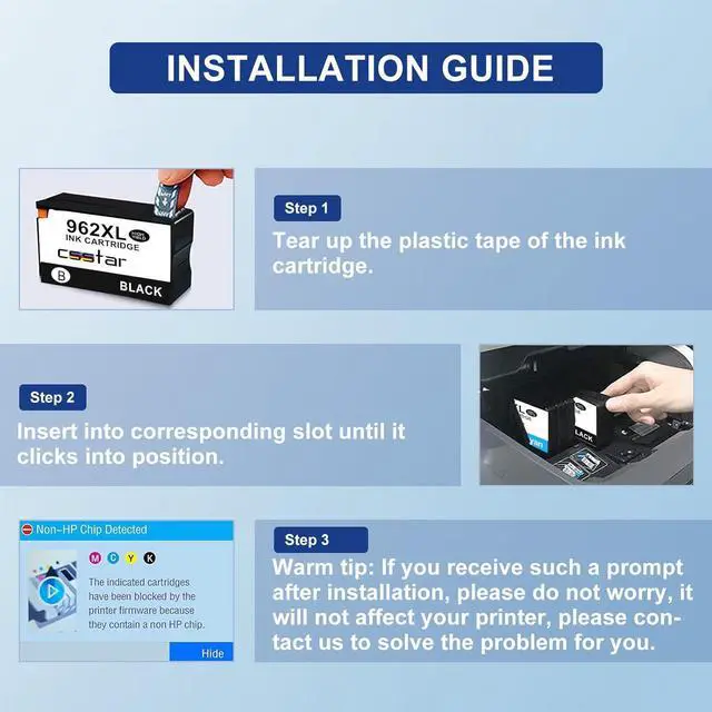 Friendly reminderTo keep the compatible 962xl ink cartridges working properly, we recommend that you ignore or close the firmware update reminder directly.