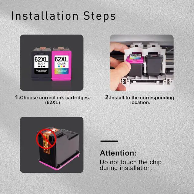 62XL Ink Cartridge Combo Pack Compatible For HP Ink 62 Works with HP Envy 7640 5660 5540 5640 OfficeJet 5740 5746 5745 250 200 8040 Series Printer(62XL Ink Cartridges Black and Color)2PK