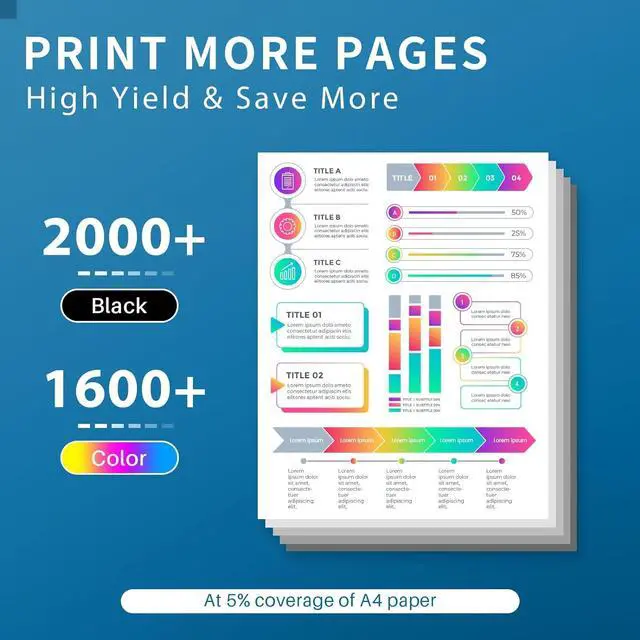 • Larger Capacity Up to 2,000 pages per 962XL 962 Black, up to 1,600 pages per 962XL 962 Color (at 5% coverage of A4 paper)