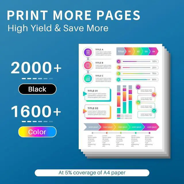 Larger Capacity Up to 2,000 pages per 952xl 952 ink Black, up to 1,600 pages per 952xl 952 Color (at 5% coverage of A4 paper)