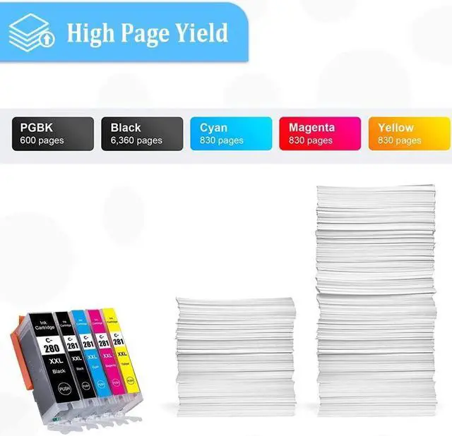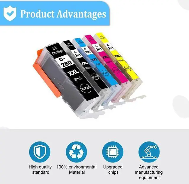 What You Will Get 1 x Large Black 280XXL, 1 x Small Black 281XXL, 1 x Cyan 281XXL, 1 x Magenta 281XXL, 1 x Yellow 281XXL ( 5 cartridges in total ).