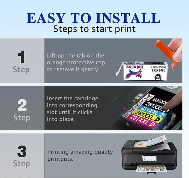 Easy to Use: These ink cartridge 280 281 are easy to use for every canon matching printers. As long as it is installed, the adapted printers can immediately recognize them and they works with equivalent quality to the original ink cartridges