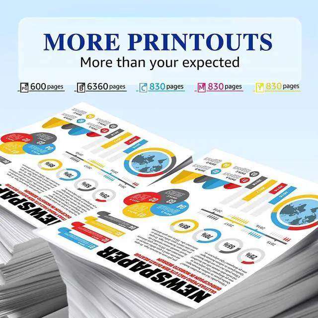 High Page Yield: 280 ink cartridges for canon print up to 600 pages per XXL PGBK, 6360 pages per XXL Black, 830 pages per XXL color cartridges (PGBK,Black,Cyan,Magenta,Yellow)