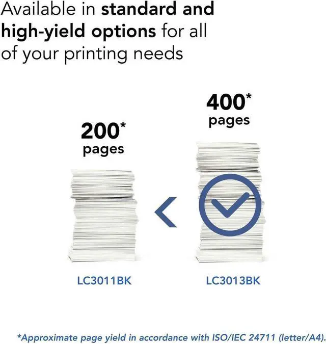 High-Yield: Up to 400 pages per Compatible LC3013 ink @ 5% Coverage