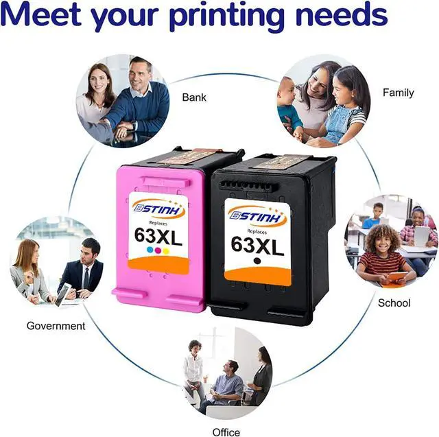 BSTINK Remanufactured InkCartridge Replacement for HP 63XL DeskJet 1112 2132 3632,Envy 45204516,Officejet3830 3833 4650 Printer