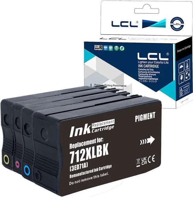 LCL Remanufactured 712 712XL 80ML + 3*29ML High Yield 3ED70A 3ED71A 3ED67A 3ED68A 3ED69A T650 T630 T250 T230 T210 (4-Pack Black Cyan Magenta Yellow) Pigment Ink Cartridge DesignJet T650