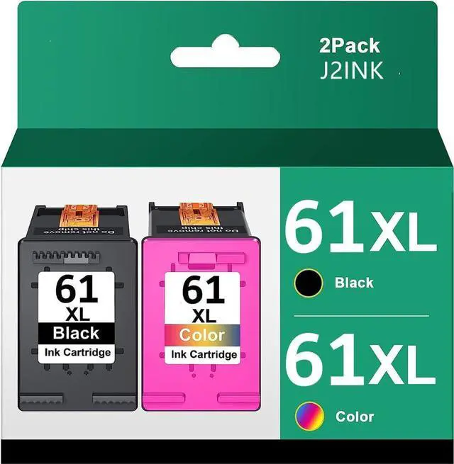 Package Contents: 2 Pack (1 Black | 1 Tri-color) remanufactured ink cartridge replacement for HP 61XL 61 XL