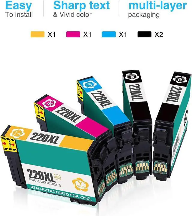 Remanufactured Ink Cartridge Replacements for Epson 220 220XL 220 XL T220 Ink Cartridges