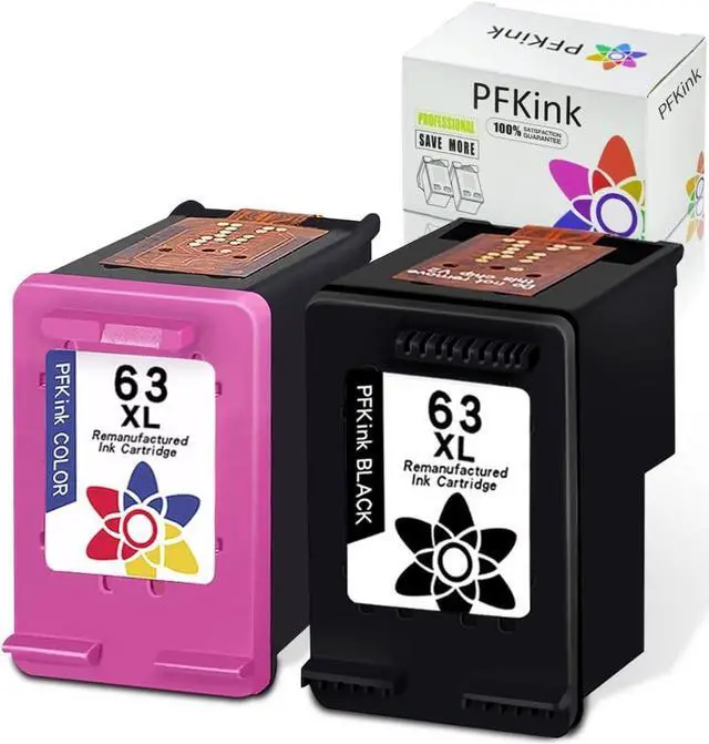 Item Descriptions: Package included: 2 pack of PFKink Remanufactured ink cartridge replacmeent for HP 63XL ink (1 Black, 1 Tri-Color)