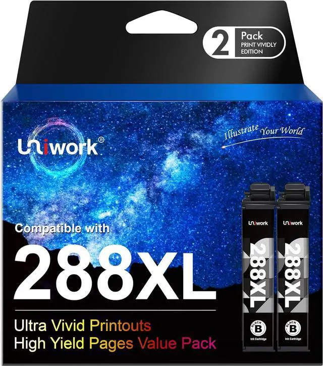 Package Contents: 2 Black 288XL 288 ink cartridges Replacement for Epson 288 ink cartridges.