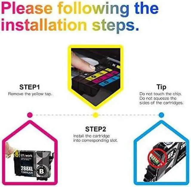 New Version: Uniwork 288XL 288 XL 288 ink cartridges with Latest Updated Chips Replacement for Epson 288 ink.