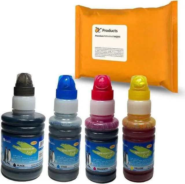 OCProducts compatible replacement for HP 32XL black and HP 31 color ink bottle.