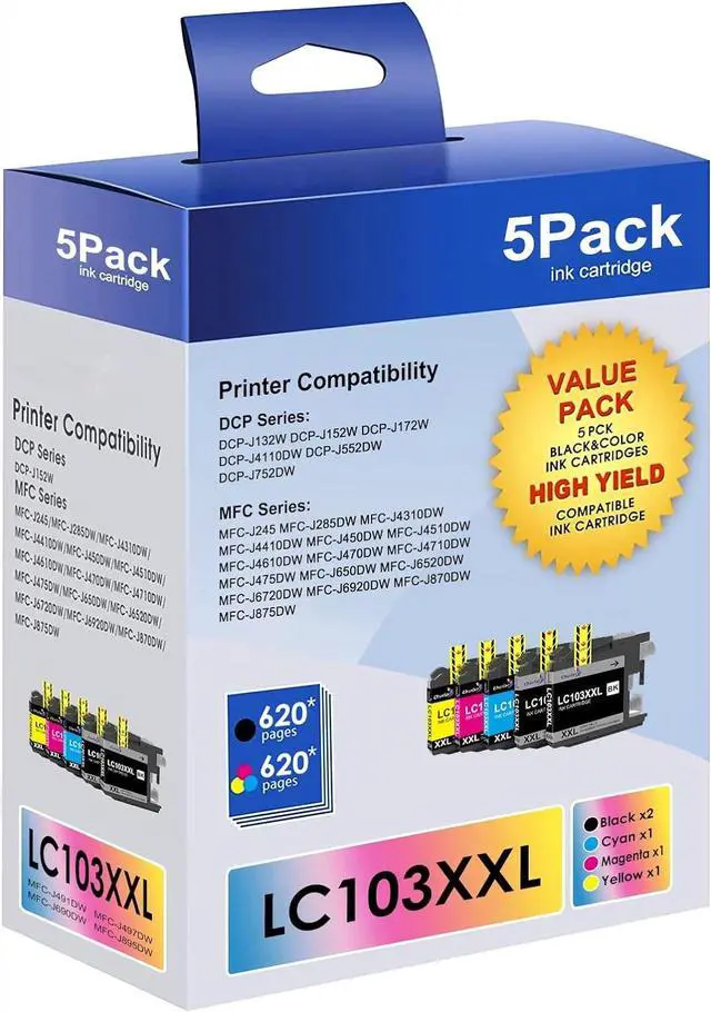 LC103 XXL Package Includes: 2 x Black LC103XL, 1 x Cyan 103XL, 1 x Yellow LC103XL, 1 x Magenta LC103XL (4PK) Compatible For Brother LC101/103 Ink Cartridges