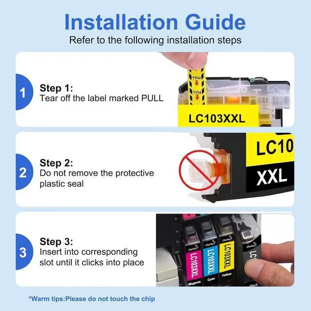 for Brother LC103 XXL Ink Cartridges Promise: Compatible For brother printer ink lc103 were tested strictly with industry quality control processes.If you have any question, please contact us directly, we will provide high quality after-sales service