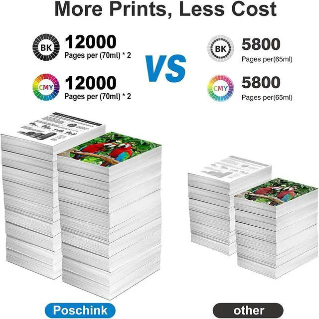 Smooth Print, Vivid Color: Whether you are printing documents or photos,our T502 waterbased dye ink delivers crisp text and graphics, and does not jam your printer.