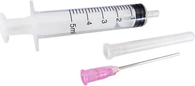 2. Use the syringe to draw 5ml ink, squeezing the air out of syringes before filling.