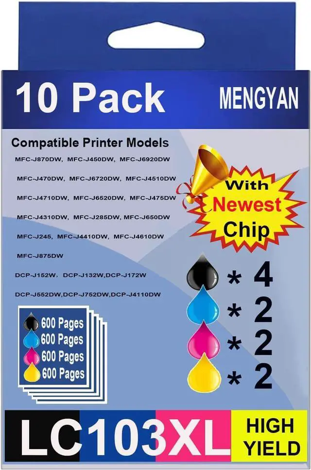 4.1 out of 5 starsMENGYAN Compatible Ink Cartridge Replacement for Brother LC103XL LC103 LC101 LC 101XL for MFC-J870DW MFC-J875DW MFC-J470DW MFC-J475DW Printer (4 Back, 2 Yellow, 2 Cyan, 2 Magenta, 10 Pack)