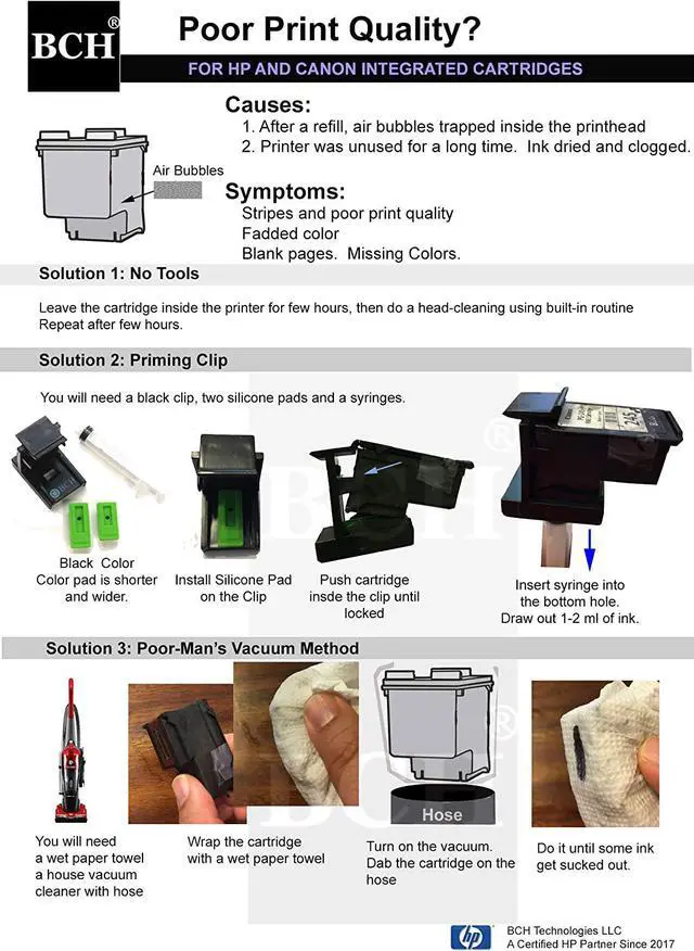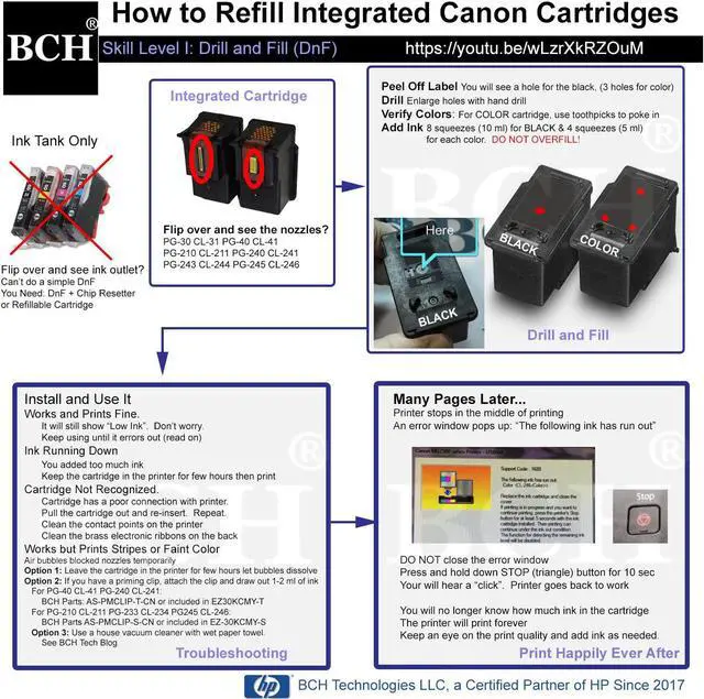 This set uses BCH Premium Ink which is compatible the OEM ink. BCH ink lowers cost and produces a wider color range, resulting in more accurate colors in photo prints. BCH inks produce a wider gamut for more vivid color, durable prints resist fading. Match or Exceed OEM specification on color, pH, surface tension and viscosity. Ideal for printing shop and small businesses. Reliable brand and Big Savings. Get premium image quality at competitive prices. Downloadable instructions are available. 3 years shelf life under normal sealed storage without direct heat and sunlight.