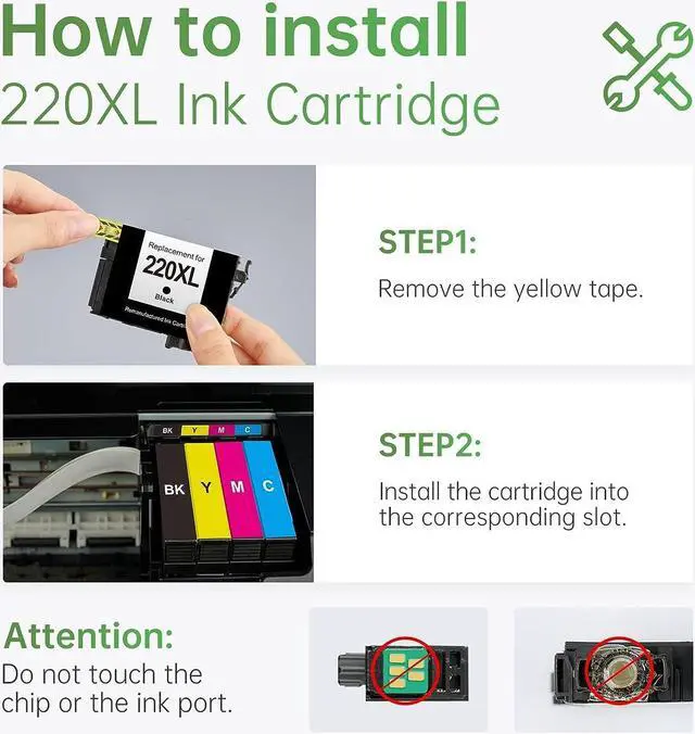 Package included: Replacement for Epson 220 220xl remanufactured ink cartrrdges 4 Pack (1 Black, 1 Cyan, 1 Magenta, 1 Yellow)