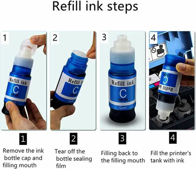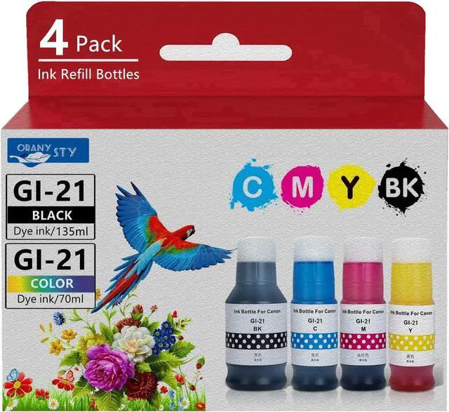 Package include: 4x compatible for Canon GI-21 ink bottles (1*Black, 1*Cyan, 1* Magenta, 1* Yellow ). Not Sublimation Ink