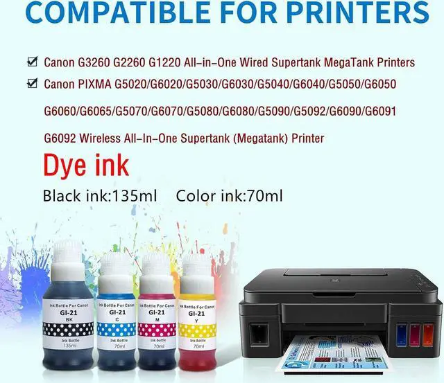 Please note: Gi-21 bottle ink are different from GI Series like GI290 GI26 GI23,They are compatible with different models. Please pay attention to whether your printer model is mentioned by us before buying.