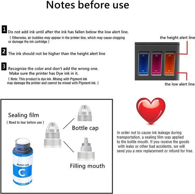 Features: Premium Raw Material,Importted paste and no damage for the print head. No Bleeding, No Smearing, High Print quality. Nano Particle, 100% compatible, ink contained with anti head blocking and 0.1 micron filtration, benefit to extend the life of print head. Excellent fluency, with adjusted of ink v
