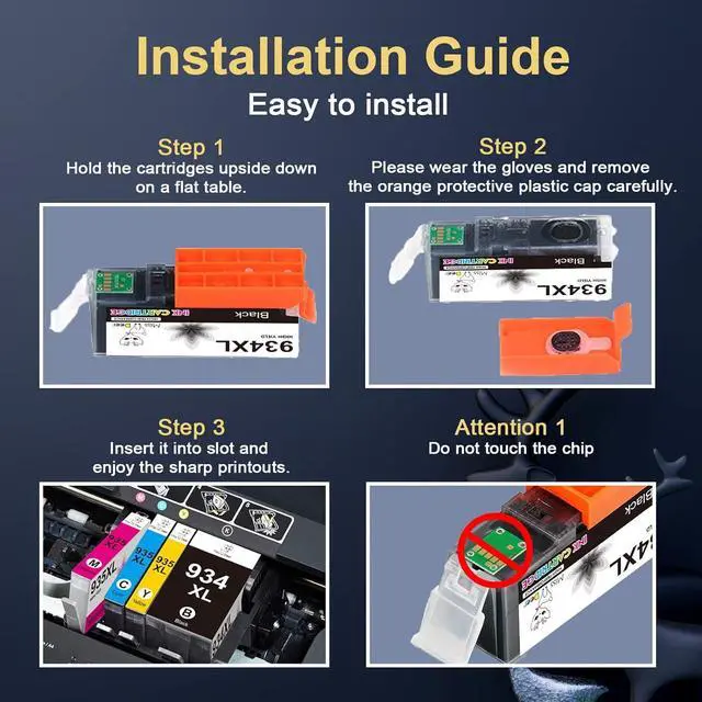 1. Please do not touch the chip or the cartridge may not recognize the printer.