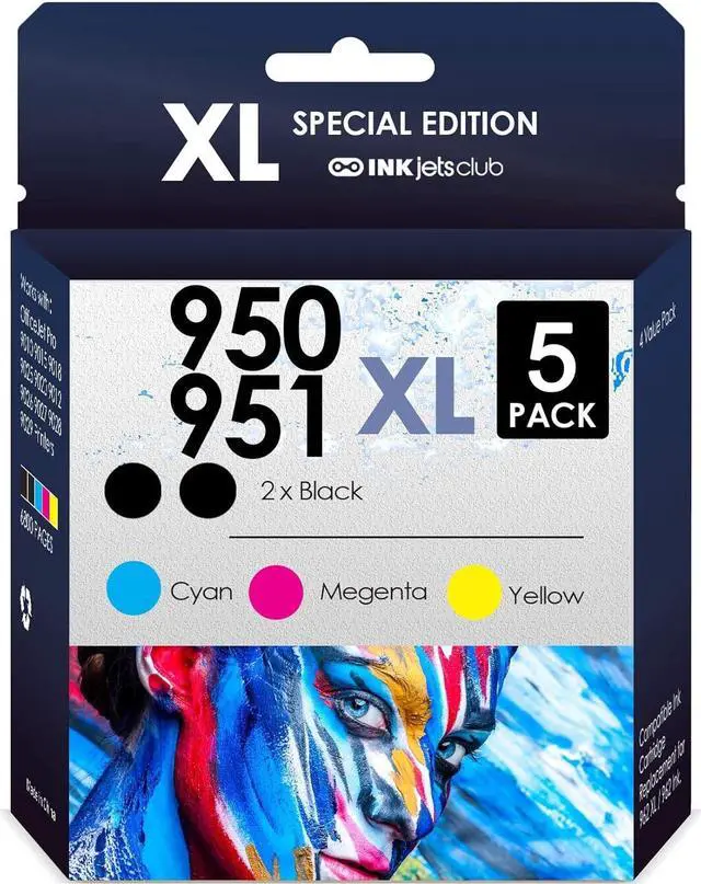 Dam Aila Ink Cartridge 950 Compatible for 950 Ink Cartridge with HP OfficeJet Pro 8600(2 Black, 1 Cyan, 1 Magenta, 1 Yellow, 5 Pack)