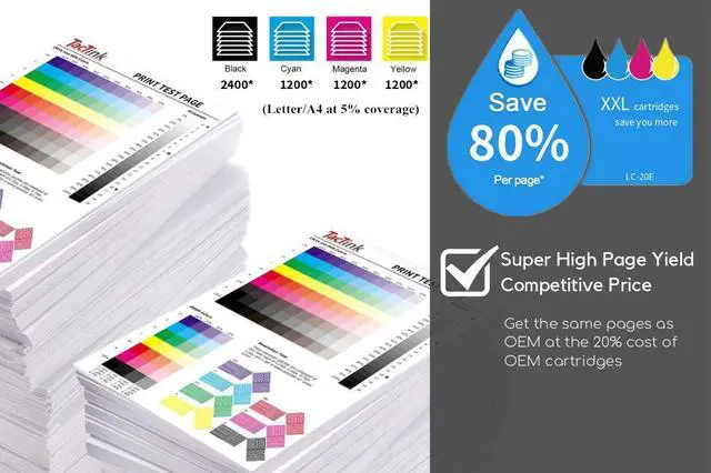 Next page of related Sponsored Products TacTink Compatible LC 20E Super High Yield Ink Cartridges Package includes Package includes Package includes Package includes Work in seamless unison with the following Brother printers: Easy to Install and Use: Super High Capacity Page Yield Vivid Images and text Perfect Packaging Quality Control