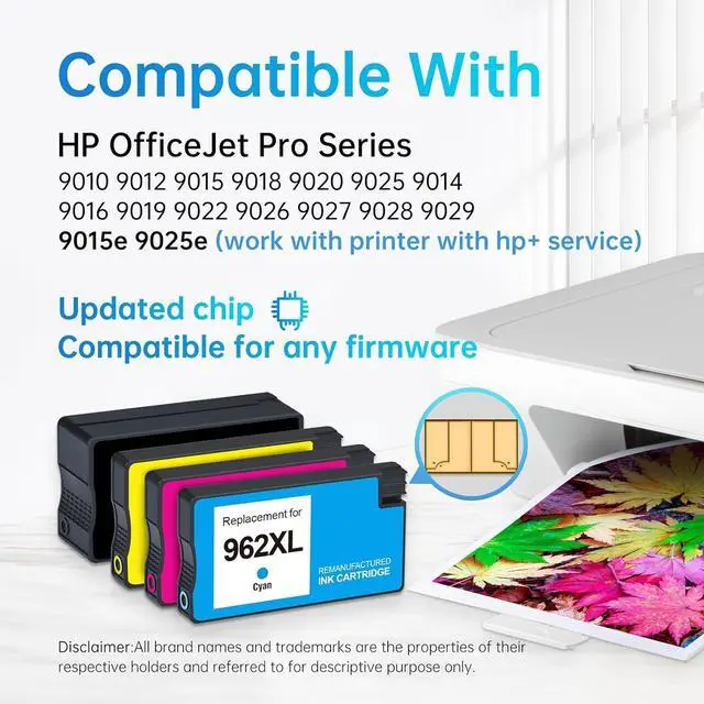 2. The 962XL ink cartridges are not compatible with *e series printers with HP+ Service