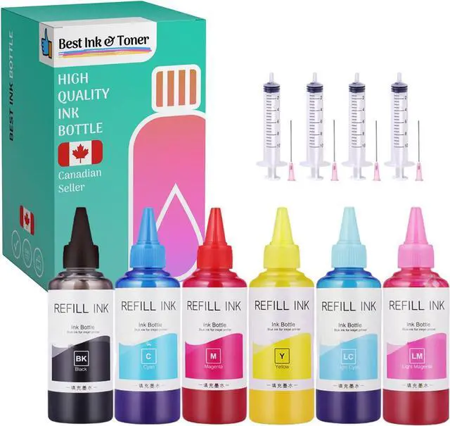 6 Pack Best Ink Refill Kit Universal Dye Ink for use as Refill Kit Canon Epson Brother Lexmark Printers 6 Color Combo Set with 6 Free Syringes (BK, C, M, Y, Light Cyan, Light Magenta)