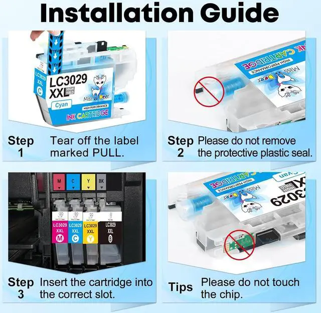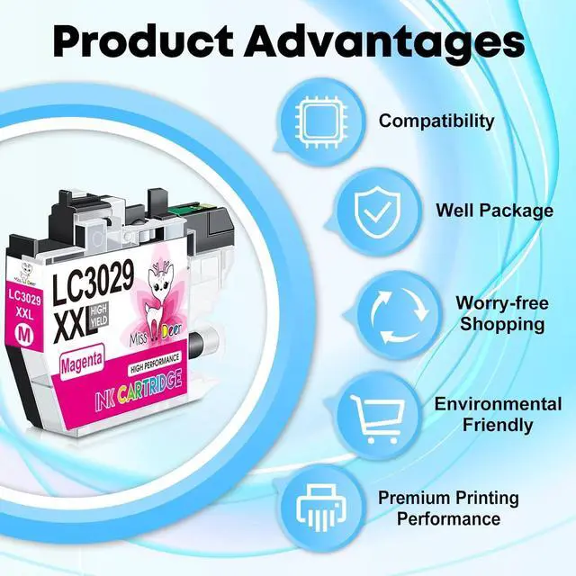 Miss Deer LC3029XXL Compatible Ink Cartridge Replacement for Brother LC3029 XXL(2BK/2C/2M/2Y) 8-Pack