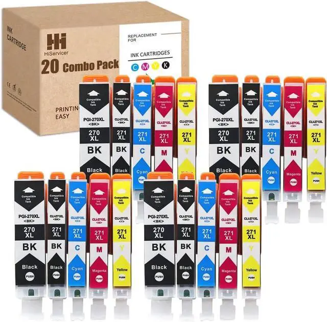 Vivid Images and Accurate text : We strives to provide you with high quality ink cartridges that will provide long lasting photos and graphic prints. Our ink cartridges will deliver crisp and sharp text,leaving you with prints free of bleeding and smearing. Kindly Reminder: For Beautiful long lasting photos, it is recommended to use photo paper. We focus on Building Quality: All of our cartridges go through rigorous quality control processes to ensure that your ink cartridge exceeds market standards. High Build Quality + High Ink Quality = High Yield! 100% Perfect Fit for Below Printer Models: For Canon Pixma MG5720 printer; For Canon Pixma MG5721 printer; For Canon Pixma MG5722 printer; For Canon Pixma MG6820 printer; For Canon Pixma MG6821 printer; For Canon Pixma MG6822 printer; For Canon Pixma MG7720 printer; For Canon Pixma TS5020 printer; For Canon Pixma TS6020 printer; For Canon Pixma TS8020 printer; For Canon Pixma TS9020 printer; Value Pack: PGI270XL and CLI271XL Super High Yield 20Pieces = 4*Large Black + 4*Small Black + 4*Cyan + 4*Magenta + 4*Yellow High Yield Pages: 500pages per black and 300pages per color @5% A4 Paper Coverage