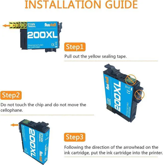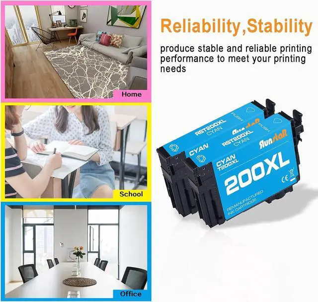 Products Details: 2 Pack Run Star Remanufactured Epson 200XL T200XL Ink Cartridges (2 Cyan)