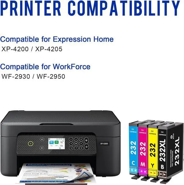 1 x 232XL black ink cartridge, 1 x 232 cyan ink cartridge, 1 x 232 magenta ink cartridge,1 x 232 yellow ink cartridge,(4Pack)