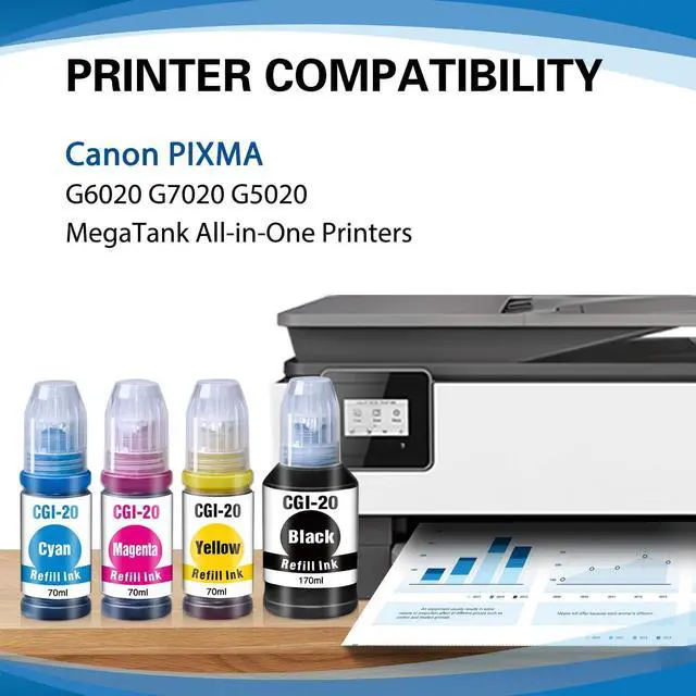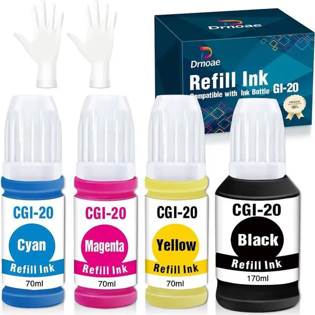 4 Pack of compatible GI-20 ink for Canon GI-20 refill ink bottles,