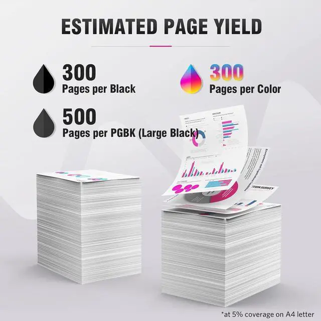 This combo includes PGBK, Black, Cyan, Magenta, Yellow color which helps you get the vivid color paperwork.